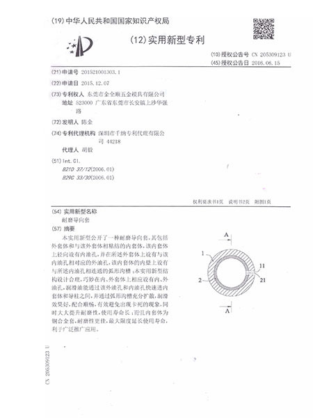 耐磨导向套实用新型专利证书