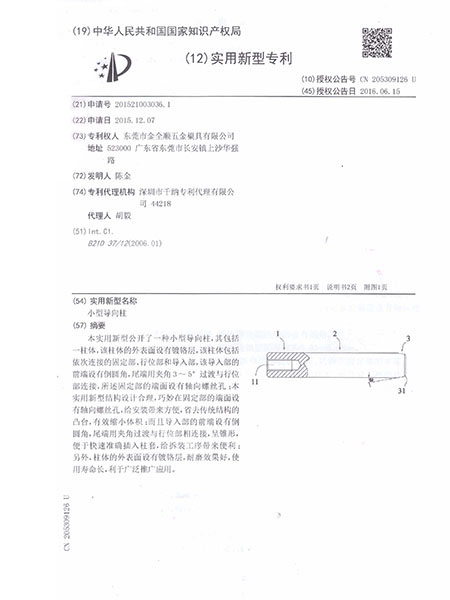 上一个:快装长寿命模具导向柱实用新型专利证书
